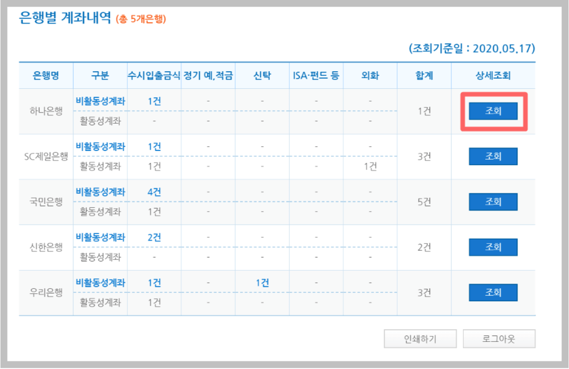 휴면계좌 통합조회는 현재 이용하고 있는 은행들의 계좌 뿐 아니라 상당기간 사용하지 않은 계좌에 이르기까지 모두 한번에 조회가 가능한 서비스입니다.