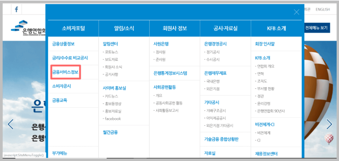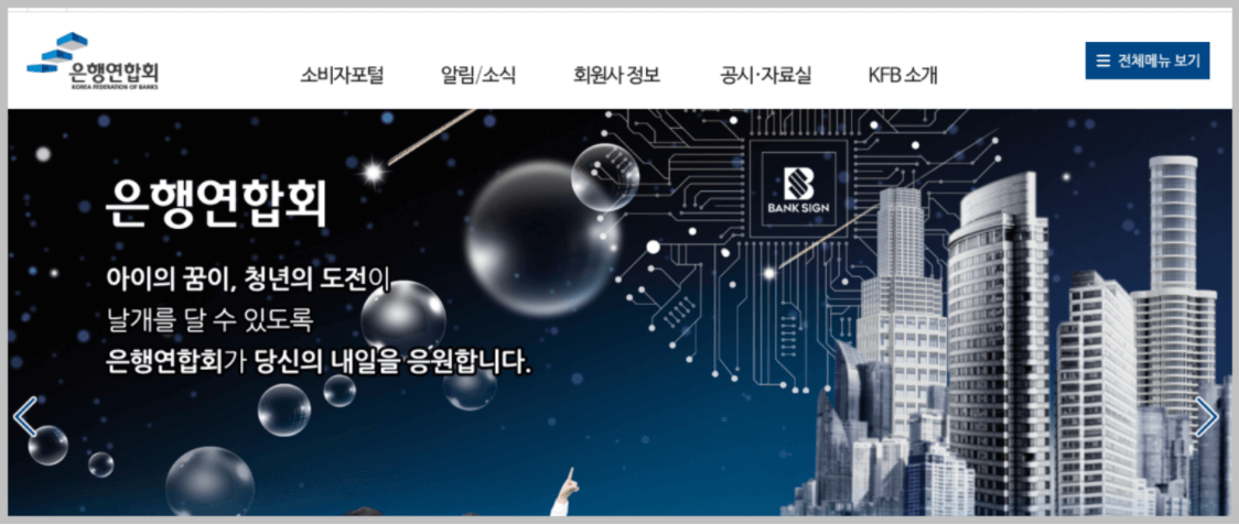 전국은행연합회 사이트를 활용하시면 현재 사용하고 있는 계좌 뿐 아니라 휴면상태에 있는 계좌에 이르기까지 한번에 조회가 가능합니다. 아래 링크를 통해서 전국은행연합회 사이트로 이동합니다.